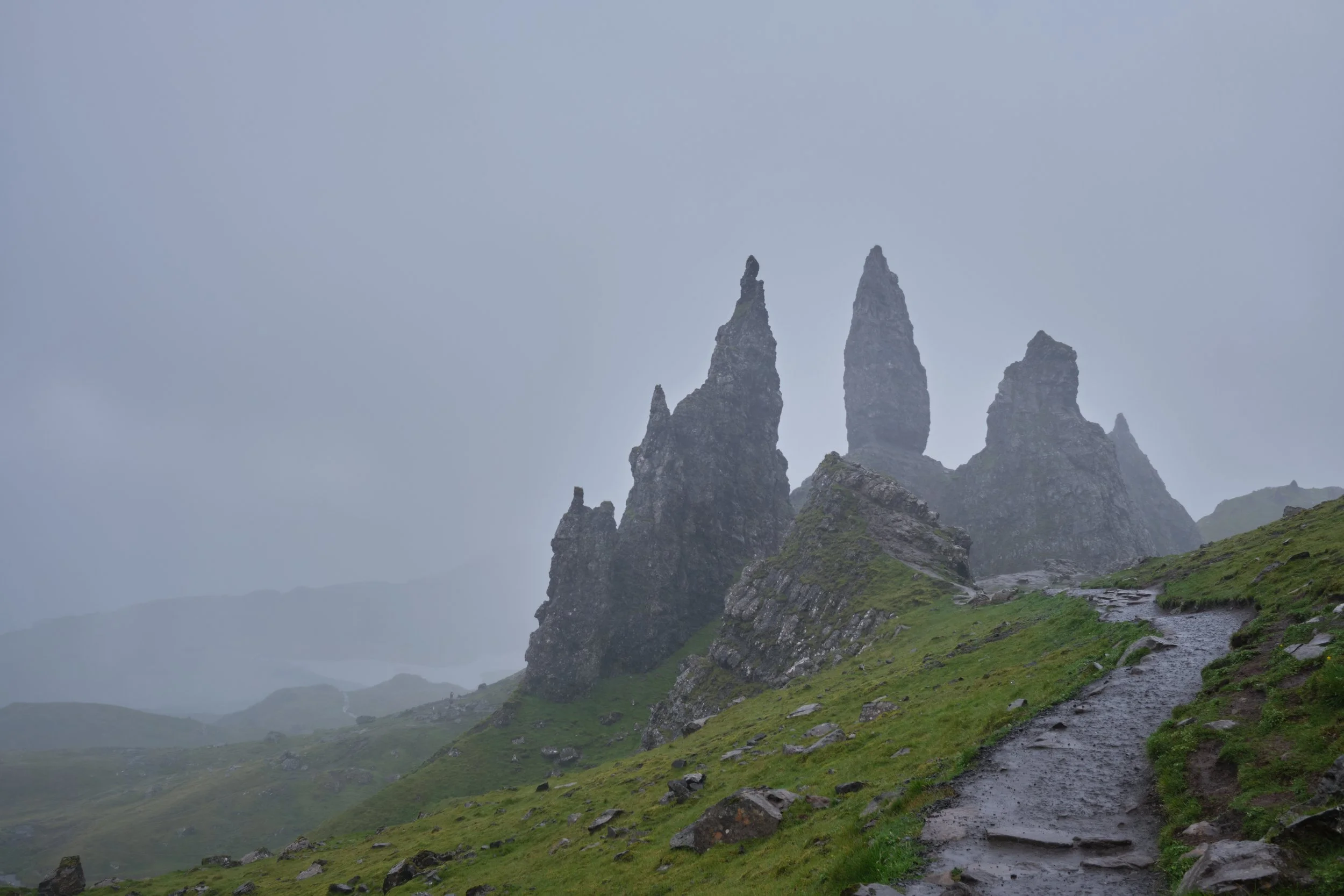 The Old Man of Storr is perhaps the Isle of Skye’s most iconic sight — a jagged pinnacle of rock rising dramatically from the Trotternish Ridge. The trailhead is just a short drive from Portree, and we arrived early enough to find parking before the crowds set in.